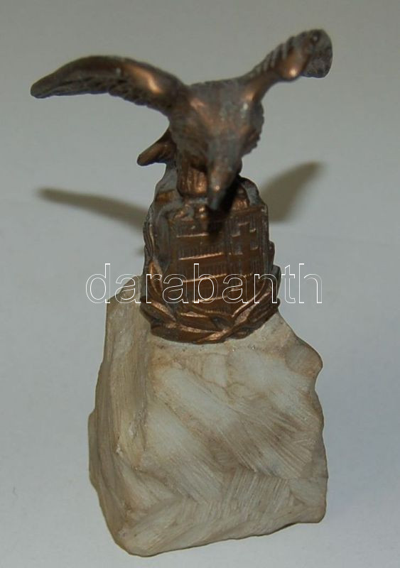 Beschreibung: Bronz Turul szobor Kossuth-címerrel, kő talapzaton / Bronze staute 16 cm