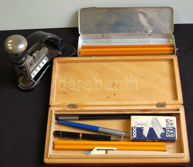 Kis írószer tétel: régi tűzőgép kapcsokkal, ceruzák, rotring, toll, 2 ... https://www.darabanth.com/de/142-Fernauktion/142.0/Andere-Sammelgebiete/Flohmarkt~1500017/Kis-iroszer-tetel-regi-tuzogep-kapcsokkal-ceruzak-rotring-toll-2-tolltarto~II420332