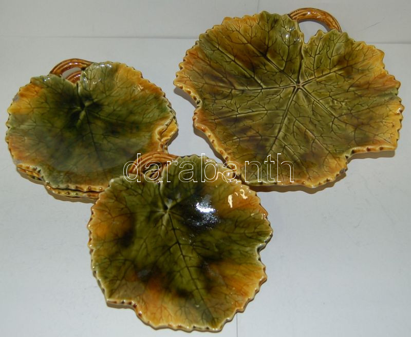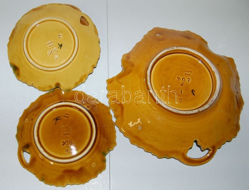 Schütz Cilli falevél formájú jelzett kerámia tálak 4 kicsi, 1 nagy (egyiken kis lepattanás) / Ceramic bowls signed Schütz Cilli (one with small damage)