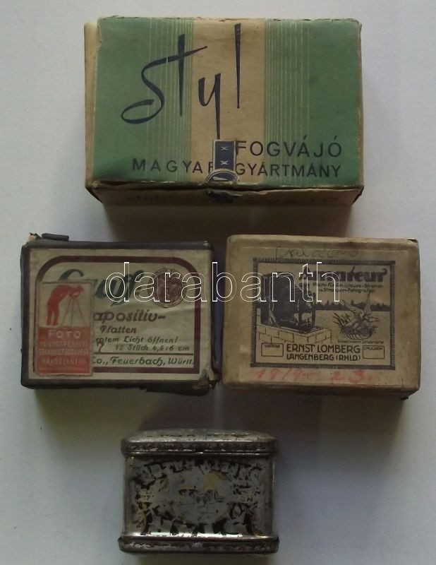 cca 1920 Film és borotvapengés fém és papír-dobozok össz 4 db https://www.darabanth.com/de/142-Fernauktion/142.0/Andere-Sammelgebiete/Flohmarkt~1500017/cca-1920-Film-es-borotvapenges-fem-es-papir-dobozok-ossz-4-db~II413905