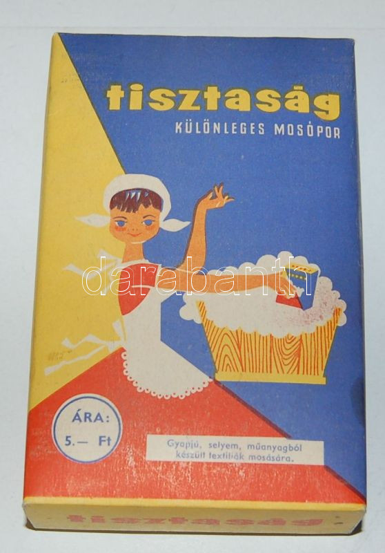 cca 1960 Eredeti, bontatlan, Tisztaság mosópor / Original pack of dete... https://www.darabanth.com/de/142-Fernauktion/142.0/Andere-Sammelgebiete/Flohmarkt~1500017/cca-1960-Eredeti-bontatlan-Tisztasag-mosopor-Original-pack-of-detergent~II421757
