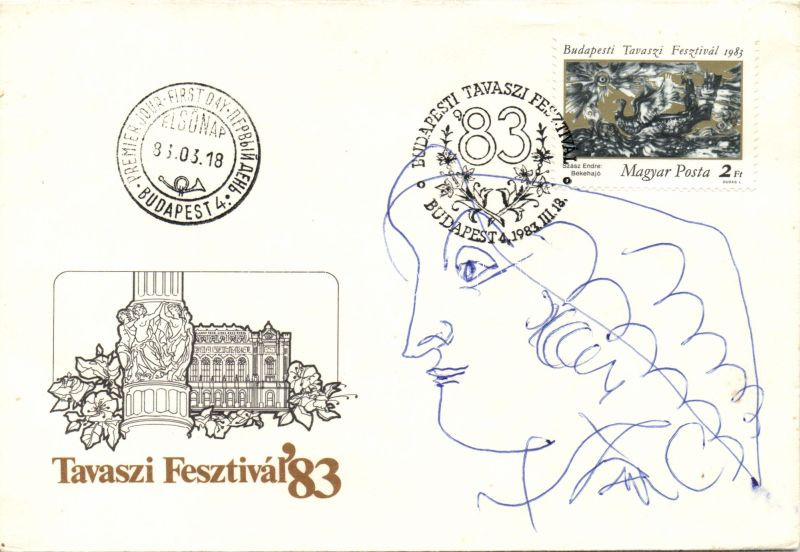 1983 Szász Endre (1926-2003): Tavaszi Fesztivál FDC, rajta a tervező S... https://www.darabanth.com/de/142-Fernauktion/142.0/Andere-Sammelgebiete/Gemalde-und-Grafiken~150/1983-Szasz-Endre-1926-2003-Tavaszi-Fesztival-FDC-rajta-a-tervezo-Szasz-Endre-tollrajzaval~II420216