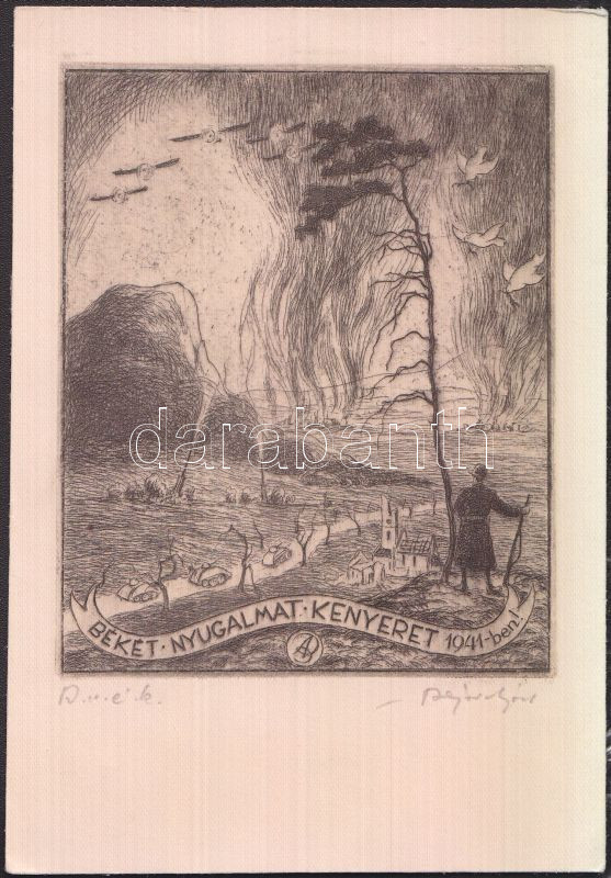 Bajor Ágost (1892-1958): Újévi üdvözlet, rézkarc-papír, jelzett, 10,5x... https://www.darabanth.com/de/142-Fernauktion/142.0/Andere-Sammelgebiete/Gemalde-und-Grafiken~150/Bajor-Agost-1892-1958-Ujevi-udvozlet-rezkarc-papir-jelzett-10-5x15-5-cm~II421638