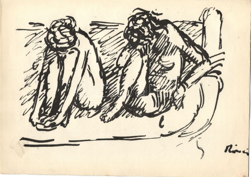 Beschreibung: Rippl-Rónai József (1861-1927): Cinkográfia, jelzett, 17x25 cm