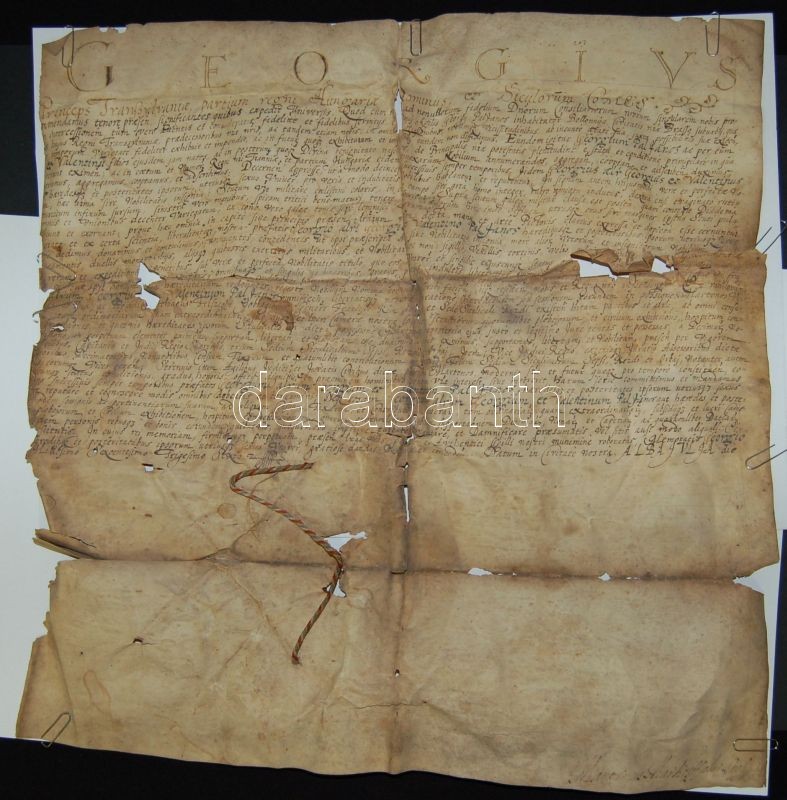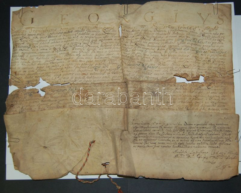1636 Rákóczi György címeres-levele Pál János Bálint részére, kihirdetv... https://www.darabanth.com/de/142-Fernauktion/142.0/Andere-Sammelgebiete/Historische-Dokumenten-Handschriften~154/1636-Rakoczi-Gyorgy-cimeres-levele-Pal-Janos-Balint-reszere-kihirdetve-1637-ben-Pergamen~II423287