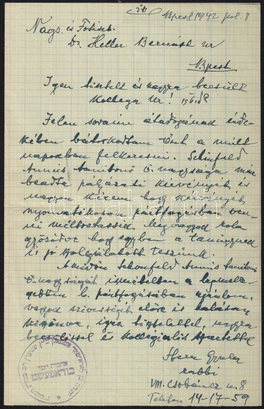 Stern Gyula csobánkai rabbi saját kézzel írt levele https://www.darabanth.com/de/142-Fernauktion/142.0/Andere-Sammelgebiete/Judaica~163/Stern-Gyula-csobankai-rabbi-sajat-kezzel-irt-levele~II423281