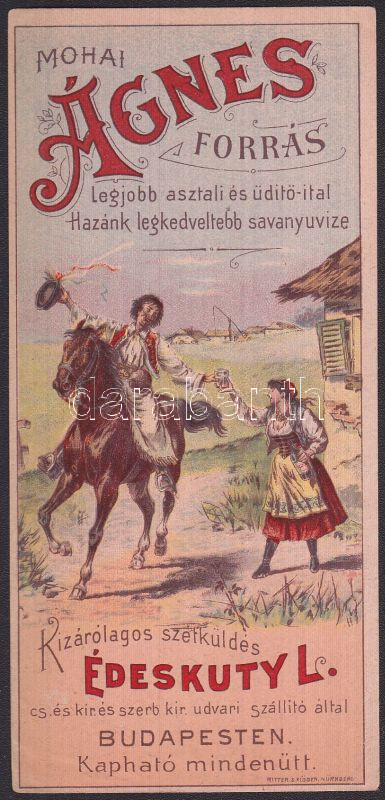 cca 1900 Mohai Ágnes forrásvíz dekoratív litho számolócédula pusztai j... https://www.darabanth.com/de/142-Fernauktion/142.0/Andere-Sammelgebiete/Werbungen~158/cca-1900-Mohai-Agnes-forrasviz-dekorativ-litho-szamolocedula-pusztai-jelenettel-szamlakent~II422373