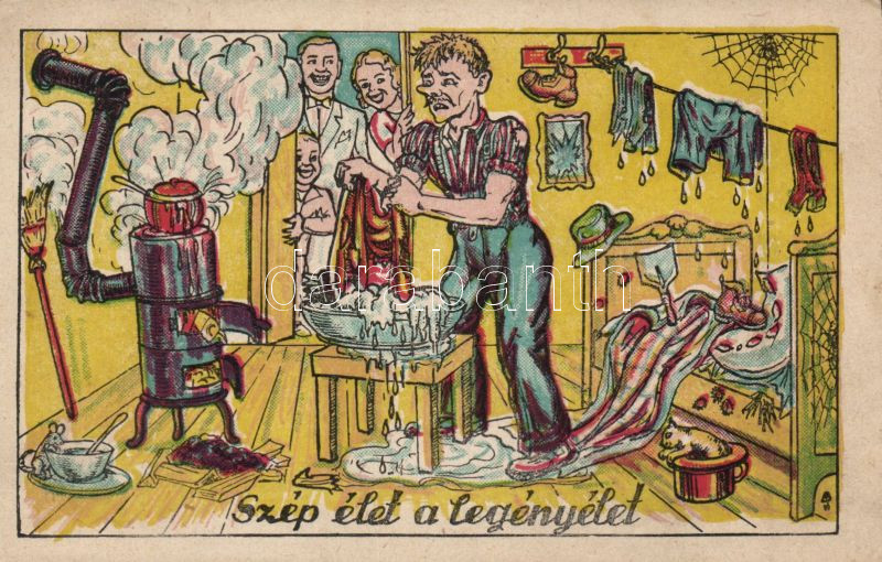 Bachelor, housekeeping humour https://www.darabanth.com/de/142-Fernauktion/142.0/Ansichtskarten/Humor~1500060/Bachelor-housekeeping-humour~II409892