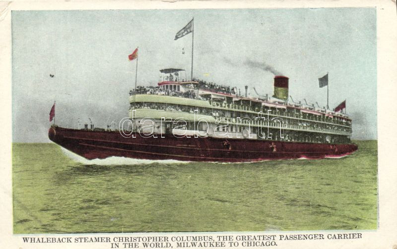 Whaleback steamer Christopher Columbus (cut) https://www.darabanth.com/de/142-Fernauktion/142.0/Ansichtskarten/Schiff~1500059/Whaleback-steamer-Christopher-Columbus-cut~II422344