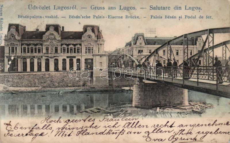 Lugos Bésán Palace and iron bridge (b) https://www.darabanth.com/de/142-Fernauktion/142.0/Ansichtskarten/Siebenburgen~500006/Lugos-Besan-Palace-and-iron-bridge-b~II420674
