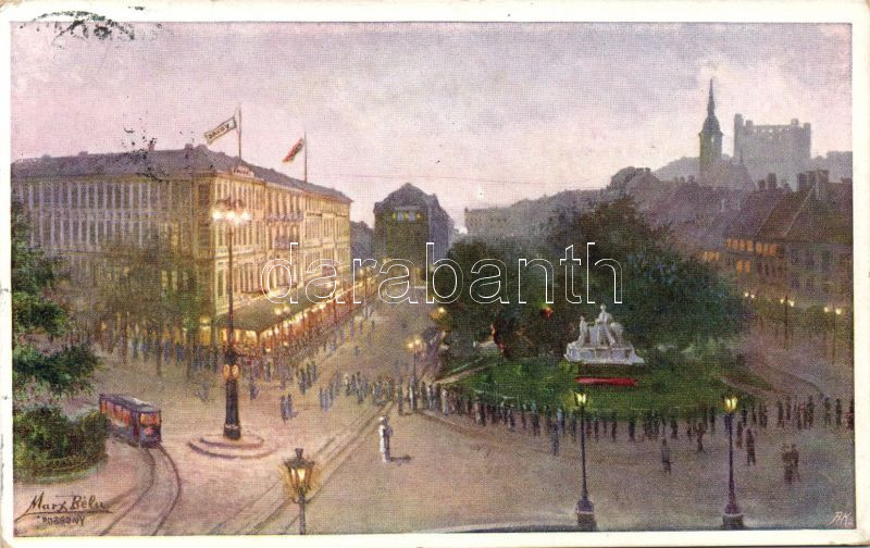 Pozsony Hotel Savoy and Hotel Carlton s: Marx Béla (gluemark) https://www.darabanth.com/de/142-Fernauktion/142.0/Ansichtskarten/Slowakei~500007/Pozsony-Hotel-Savoy-and-Hotel-Carlton-s-Marx-Bela-gluemark~II421686