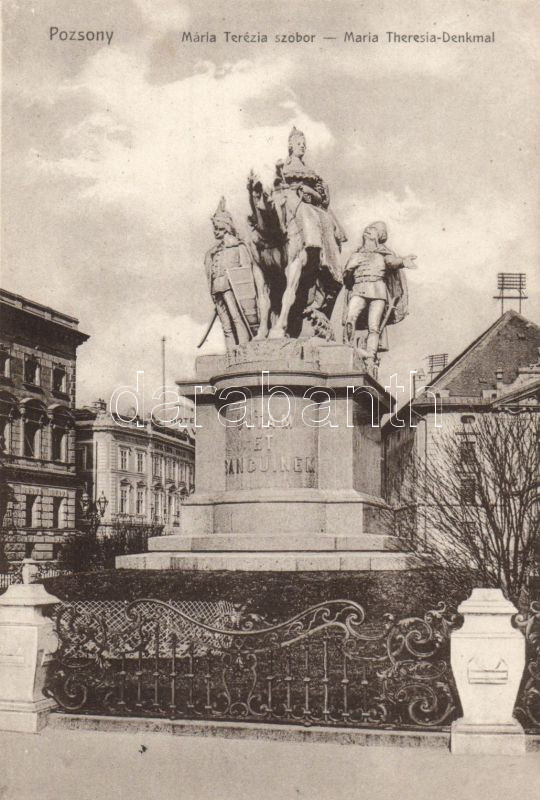 Pozsony Maria Theresa statue (gluemark) https://www.darabanth.com/de/142-Fernauktion/142.0/Ansichtskarten/Slowakei~500007/Pozsony-Maria-Theresa-statue-gluemark~II421677