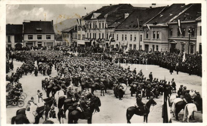 Rozsnyó entry of the Hungarian troops https://www.darabanth.com/de/142-Fernauktion/142.0/Ansichtskarten/Slowakei~500007/Rozsnyo-entry-of-the-Hungarian-troops~II421724
