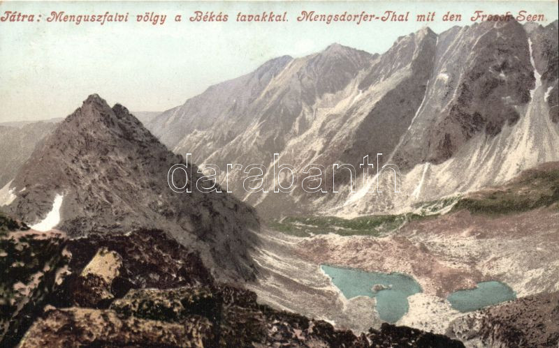 Tátra Menguszfalvi-völgy, Békás-tó https://www.darabanth.com/de/142-Fernauktion/142.0/Ansichtskarten/Slowakei~500007/Tatra-Menguszfalvi-volgy-Bekas-to~II410182