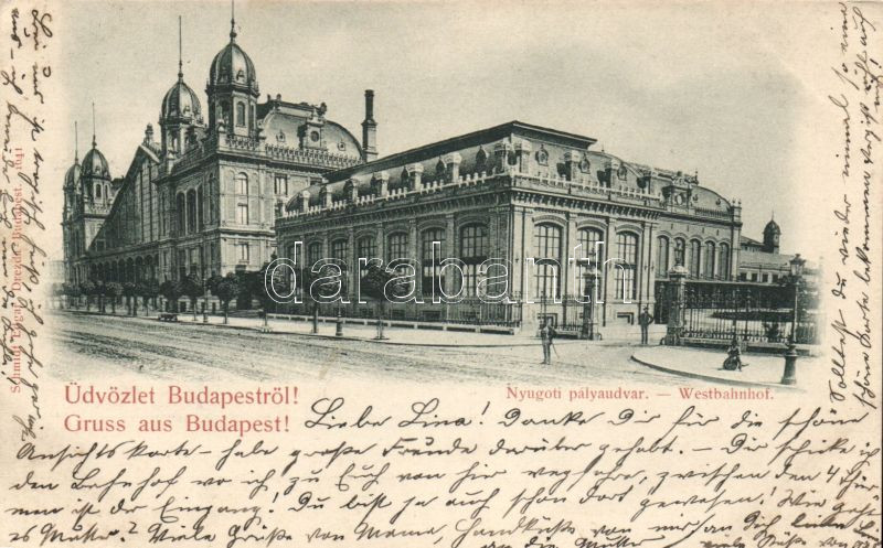 1899 Budapest VI. Nyugati Pályaudvar (levágott / cut) https://www.darabanth.com/de/142-Fernauktion/142.0/Ansichtskarten/Ungarn~500005/1899-Budapest-VI-Nyugati-Palyaudvar-levagott-cut~II421392
