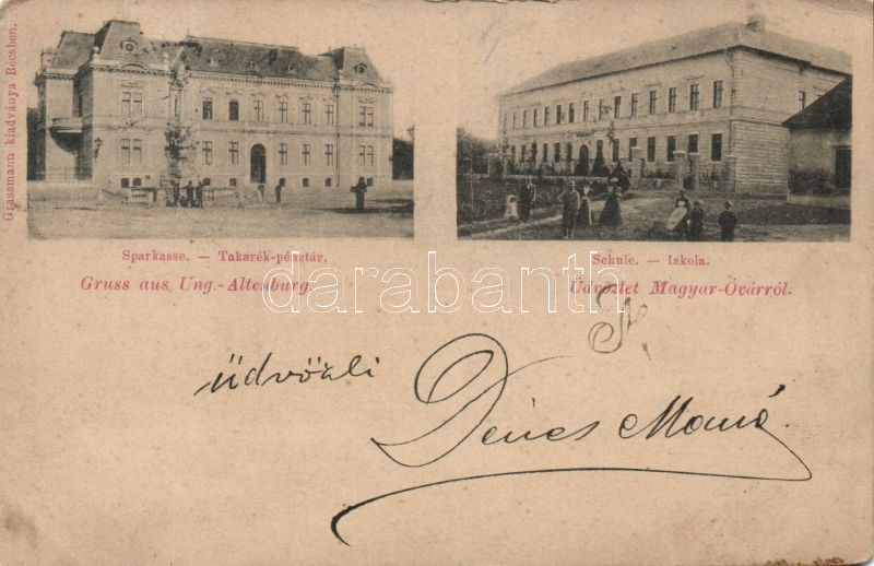 Beschreibung: 1899 Magyaróvár bank és iskola