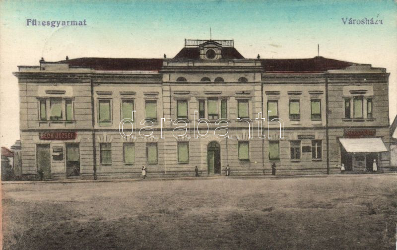 Füzesgyarmat Városháza Beck József üzletével https://www.darabanth.com/de/142-Fernauktion/142.0/Ansichtskarten/Ungarn~500005/Fuzesgyarmat-Varoshaza-Beck-Jozsef-uzletevel~II422690