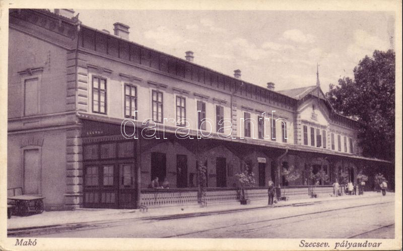 Makó Szecsev. vasútállomás https://www.darabanth.com/de/142-Fernauktion/142.0/Ansichtskarten/Ungarn~500005/Mako-Szecsev-vasutallomas~II421338