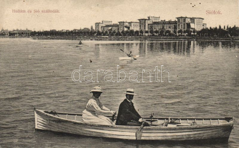 Siófok Hullám és Sió Szállodák https://www.darabanth.com/de/142-Fernauktion/142.0/Ansichtskarten/Ungarn~500005/Siofok-Hullam-es-Sio-Szallodak~II420608