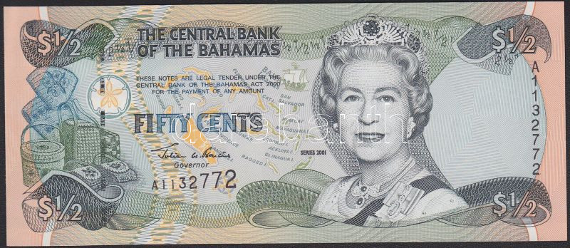 Bahama-szigetek 2001. 50c T:I https://www.darabanth.com/de/142-Fernauktion/142.0/Numismatik/Auslandische-Banknoten~1500012/Bahama-szigetek-2001-50c-TI~II410935