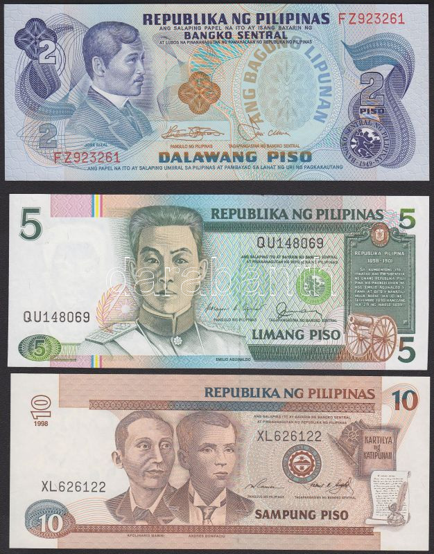 Fülöp-szigetek 1978. 2P sign.9 + 1985-94. 5P + 1998. 10P T:I https://www.darabanth.com/de/142-Fernauktion/142.0/Numismatik/Auslandische-Banknoten~1500012/Fulop-szigetek-1978-2P-sign9-plus-1985-94-5P-plus-1998-10P-TI~II411148