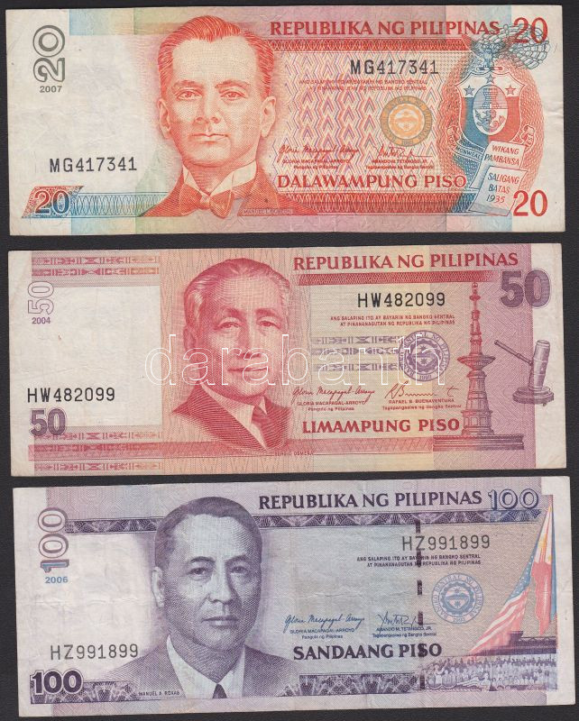 Fülöp-szigetek 2004. 50P + 2006. 100P + 2007. 20P T:III https://www.darabanth.com/de/142-Fernauktion/142.0/Numismatik/Auslandische-Banknoten~1500012/Fulop-szigetek-2004-50P-plus-2006-100P-plus-2007-20P-TIII~II411537