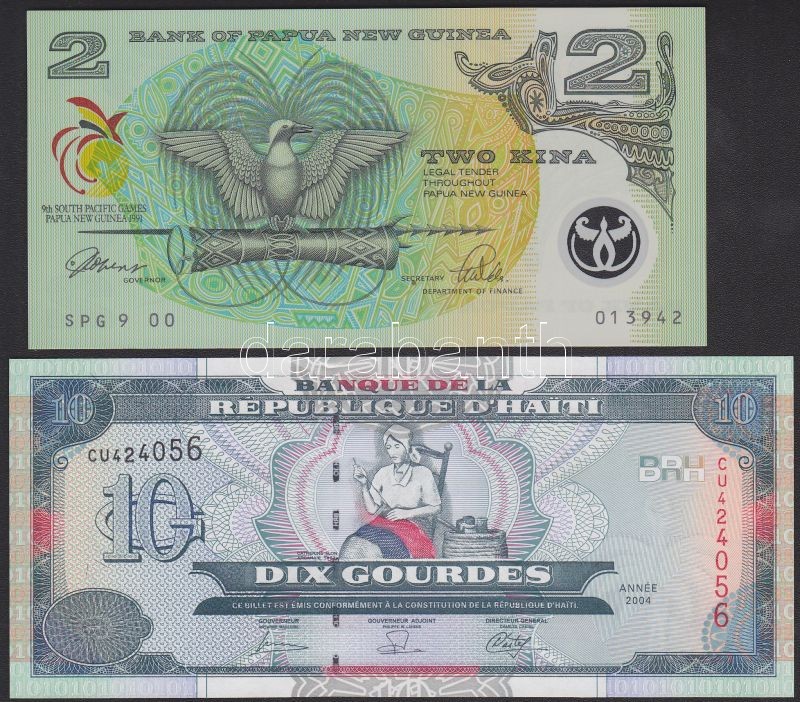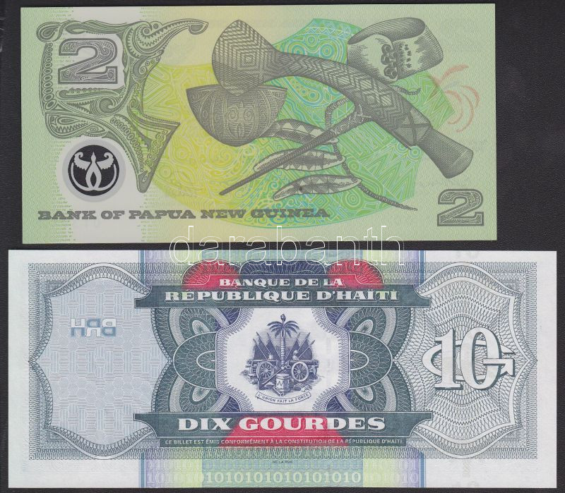 Haiti 2004. 10G + Pápua Új-Guinea 1991. 2K T:I https://www.darabanth.com/de/142-Fernauktion/142.0/Numismatik/Auslandische-Banknoten~1500012/Haiti-2004-10G-plus-Papua-Uj-Guinea-1991-2K-TI~II411498