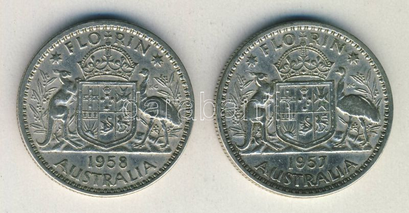 Ausztrália 1957-58. 1Fl Ag (2x) T:2-/3+ https://www.darabanth.com/de/142-Fernauktion/142.0/Numismatik/Auslandische-Munzen~1500013/Ausztralia-1957-58-1Fl-Ag-2x-T2-3plus~II422393
