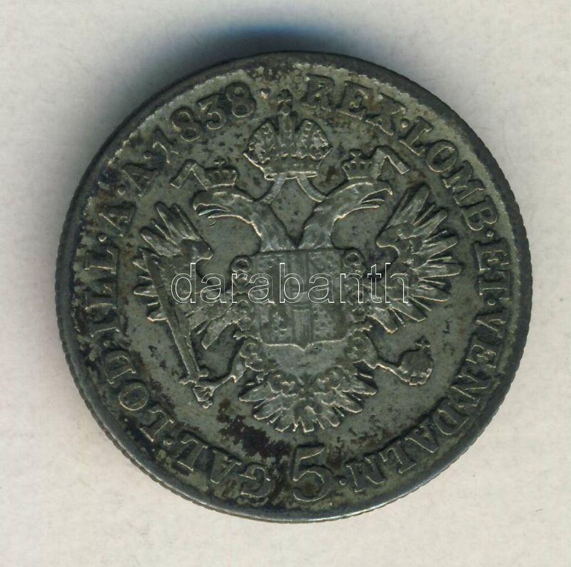 Ausztria 1838A 5K Ag "Ferdinand" T:3 https://www.darabanth.com/de/142-Fernauktion/142.0/Numismatik/Auslandische-Munzen~1500013/Ausztria-1838A-5K-Ag-Ferdinand-T3~II420325