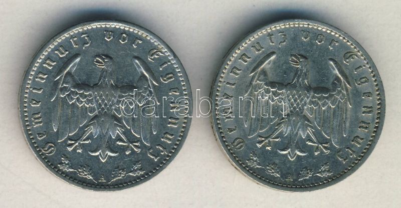 Német 3. Birodalom 1934A 1M (2x) T:2+,2 https://www.darabanth.com/de/142-Fernauktion/142.0/Numismatik/Auslandische-Munzen~1500013/Nemet-3-Birodalom-1934A-1M-2x-T2plus-2~II420346