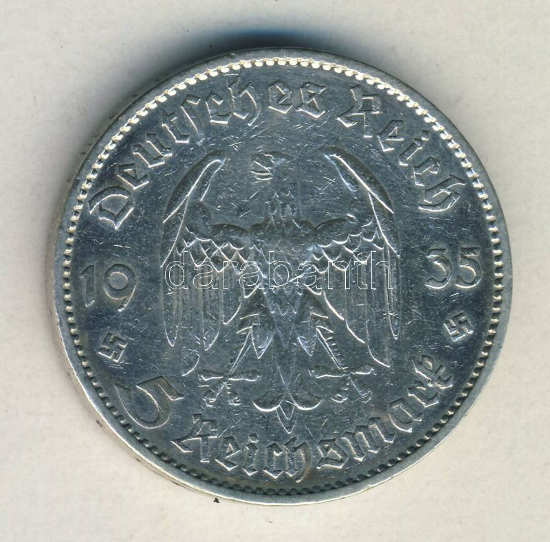 Német 3. Birodalom 1935A. 5M "Garnisonkirche" Ag T:2 https://www.darabanth.com/de/142-Fernauktion/142.0/Numismatik/Auslandische-Munzen~1500013/Nemet-3-Birodalom-1935A-5M-Garnisonkirche-Ag-T2~II420334