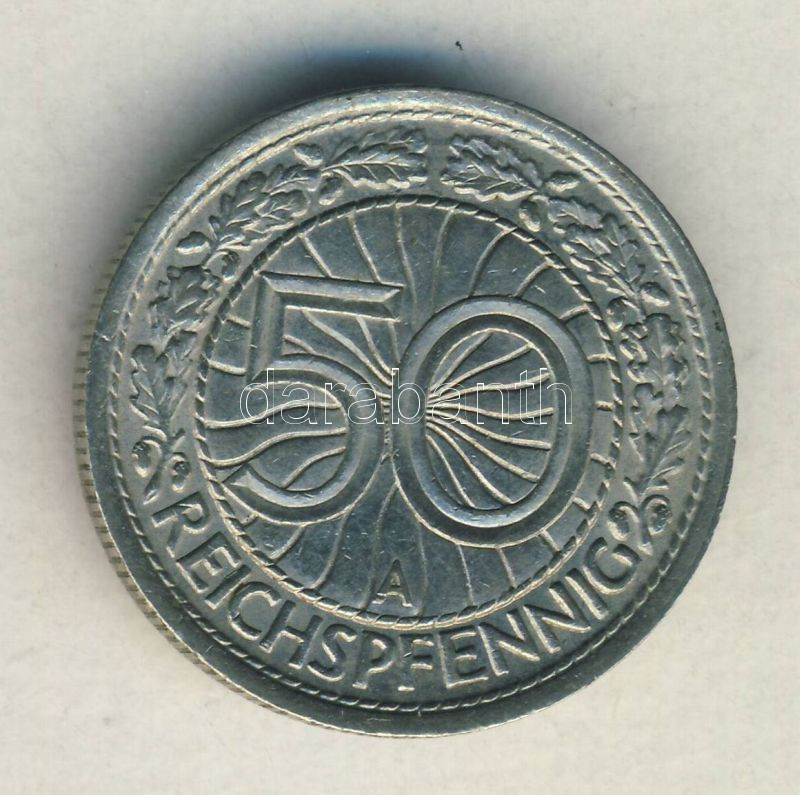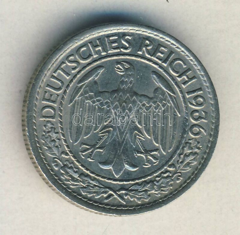 Német Birodalom / Weimari Köztársaság 1936A 50pf T:2+ https://www.darabanth.com/de/142-Fernauktion/142.0/Numismatik/Auslandische-Munzen~1500013/Nemet-Birodalom-Weimari-Koztarsasag-1936A-50pf-T2plus~II420342