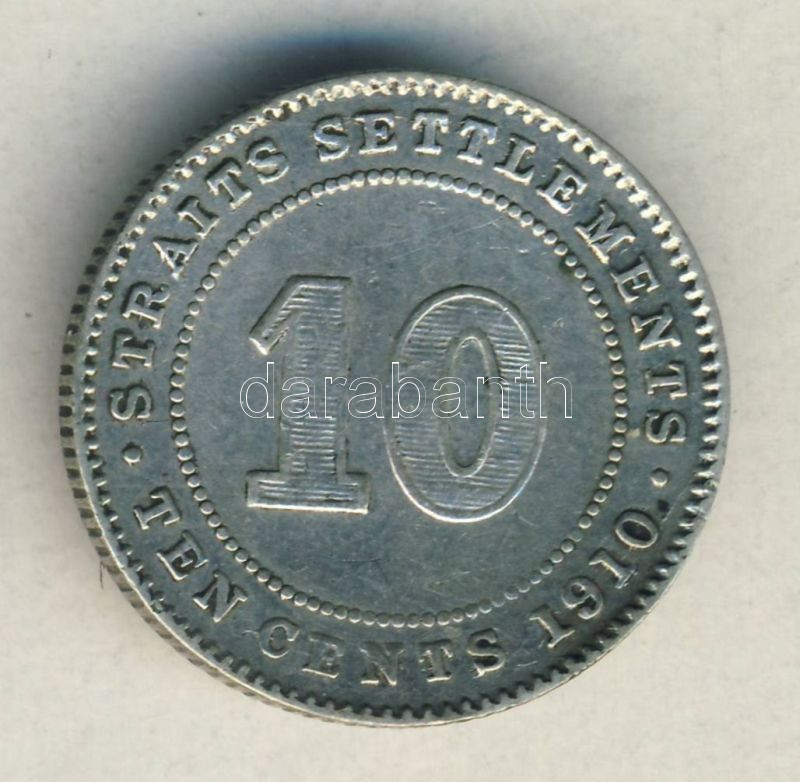 Straits Settlements 1910. 10c Ag T:2 https://www.darabanth.com/de/142-Fernauktion/142.0/Numismatik/Auslandische-Munzen~1500013/Straits-Settlements-1910-10c-Ag-T2~II420380