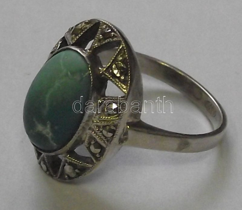 Beschreibung: Dekoratív antik ezüst (Ag) gyűrű, türkizzel és cirkóniákkal 3,7g