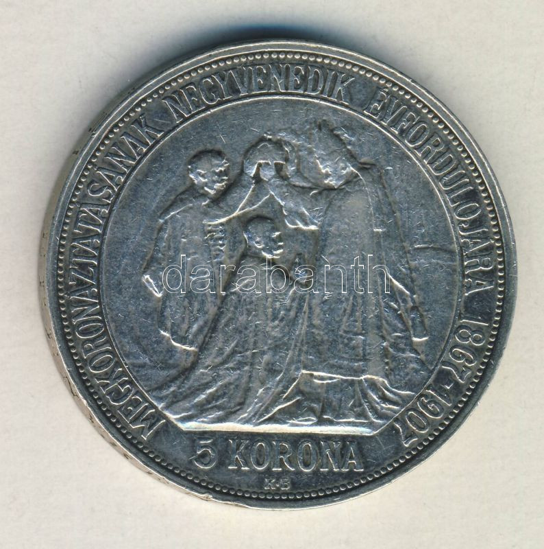 Beschreibung: 1907. 5K Ag "Koronázási évforduló" "BIZALMAM..." peremirat T:2