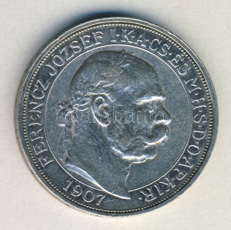 1907. 5K Ag "Koronázási évforduló" "BIZALMAM..." peremirat T:2 https://www.darabanth.com/de/142-Fernauktion/142.0/Numismatik/Ungarische-Munzen~1500009/1907-5K-Ag-Koronazasi-evfordulo-BIZALMAM-peremirat-T2~II420632