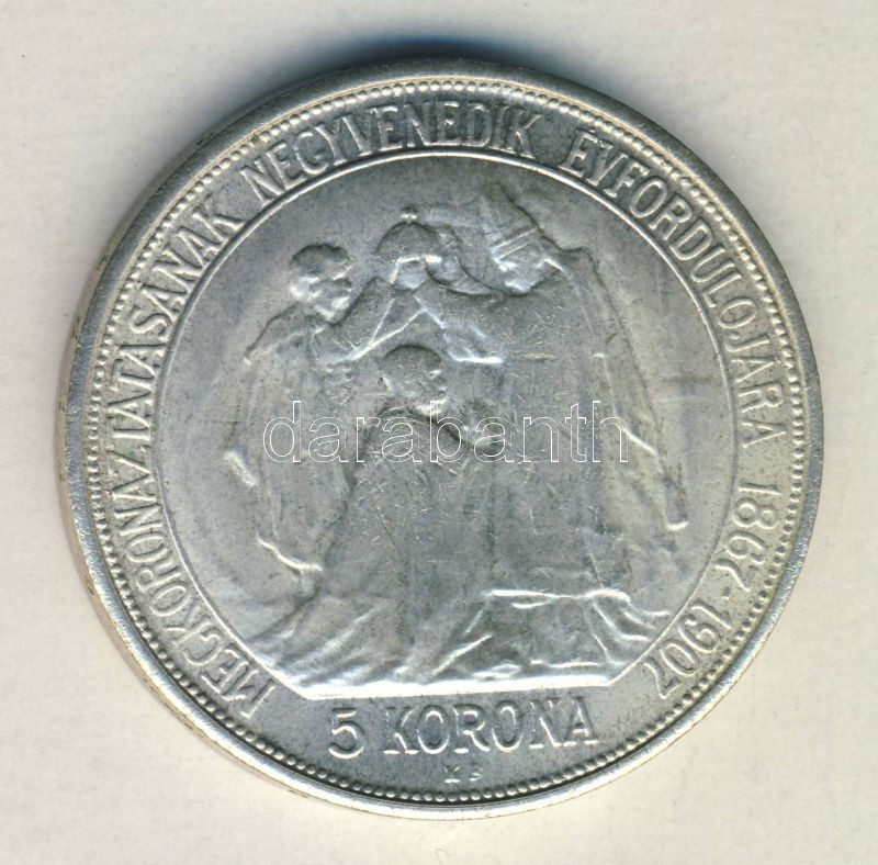 Beschreibung: 1907. 5K Ag "Koronázási évforduló" "FERT" peremirat T:2+/2
