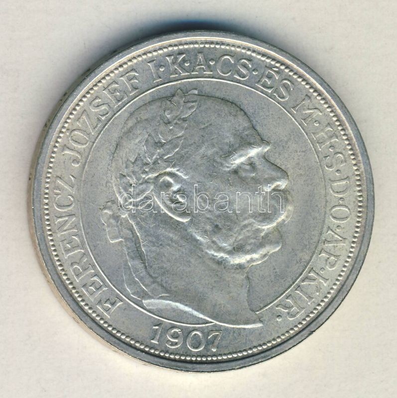 1907. 5K Ag "Koronázási évforduló" "FERT" peremirat T:2+/2 https://www.darabanth.com/de/142-Fernauktion/142.0/Numismatik/Ungarische-Munzen~1500009/1907-5K-Ag-Koronazasi-evfordulo-FERT-peremirat-T2plus2~II420627
