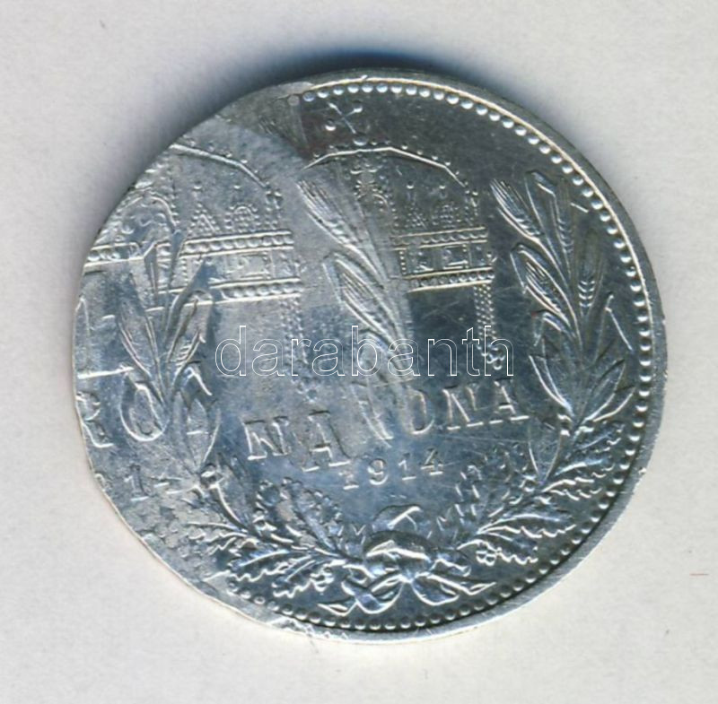 1914. 1K Ag elő- és hátoldali duplaveret T:2 https://www.darabanth.com/de/142-Fernauktion/142.0/Numismatik/Ungarische-Munzen~1500009/1914-1K-Ag-elo-es-hatoldali-duplaveret-T2~II420302