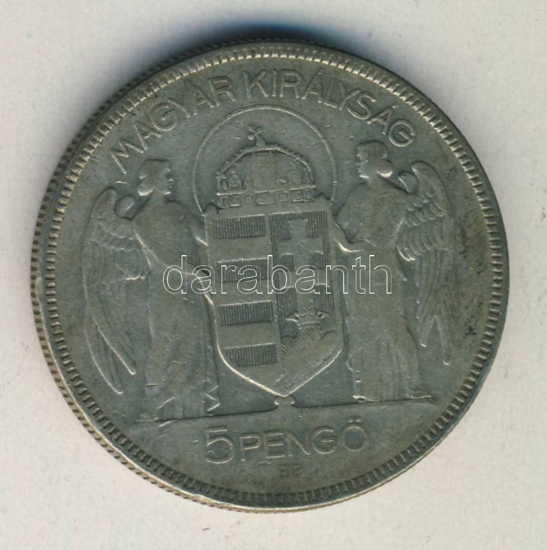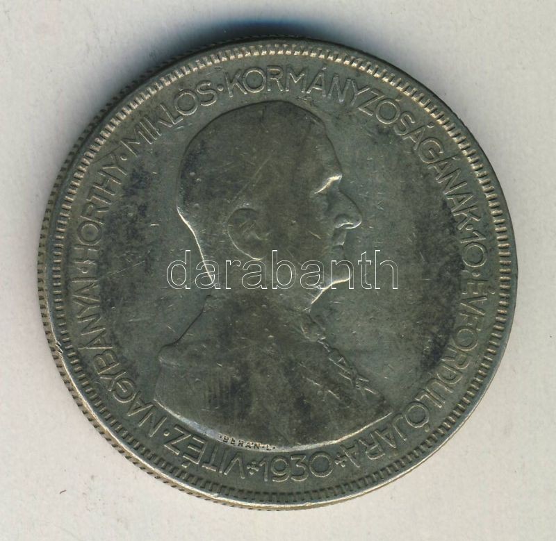 1930. 5P Ag "Horthy jobbra" T:3 ph. https://www.darabanth.com/de/142-Fernauktion/142.0/Numismatik/Ungarische-Munzen~1500009/1930-5P-Ag-Horthy-jobbra-T3-ph~II418680