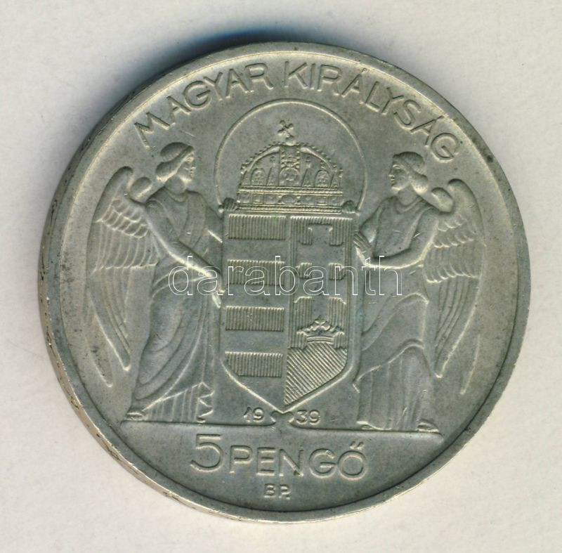 1939. 5P Ag "Horthy - balra" T:2 https://www.darabanth.com/de/142-Fernauktion/142.0/Numismatik/Ungarische-Munzen~1500009/1939-5P-Ag-Horthy--balra-T2~II420640