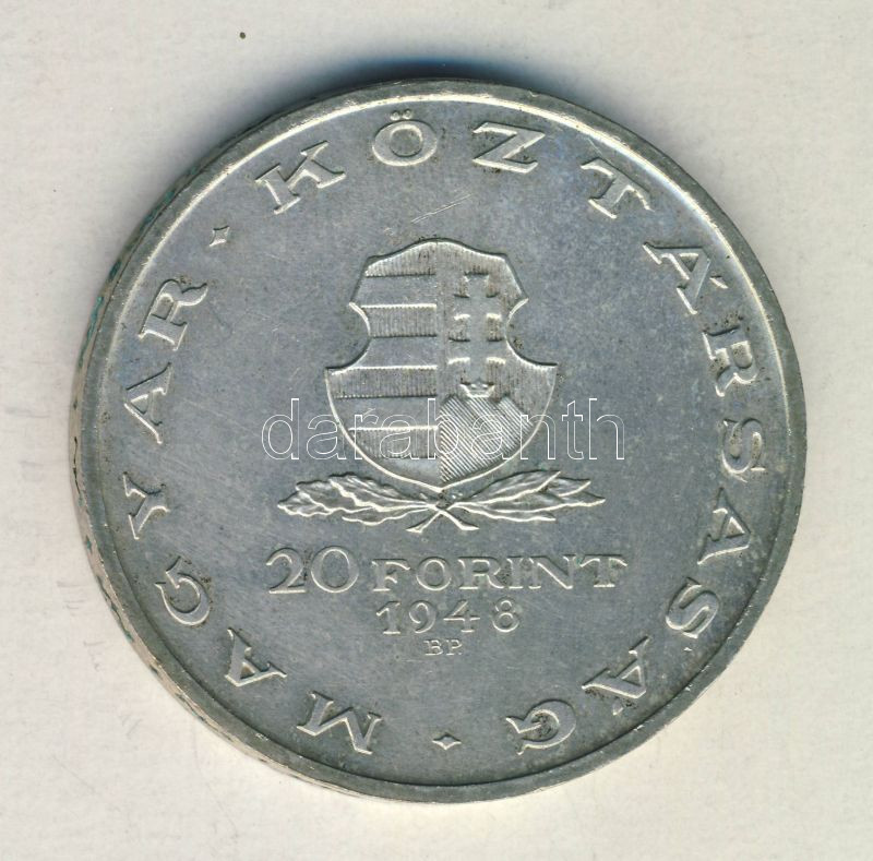 1948. 20Ft Ag "Táncsics" T:2 https://www.darabanth.com/de/142-Fernauktion/142.0/Numismatik/Ungarische-Munzen~1500009/1948-20Ft-Ag-Tancsics-T2~II420647