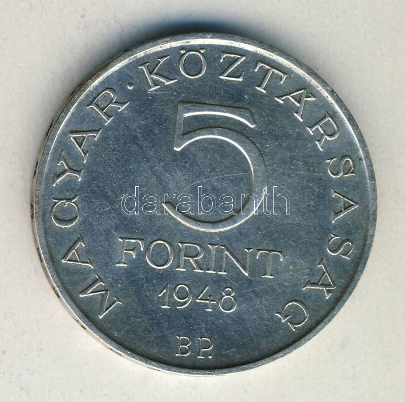 1948. 5Ft Ag "Petőfi" T:2 pici ph. https://www.darabanth.com/de/142-Fernauktion/142.0/Numismatik/Ungarische-Munzen~1500009/1948-5Ft-Ag-Petofi-T2-pici-ph~II422629