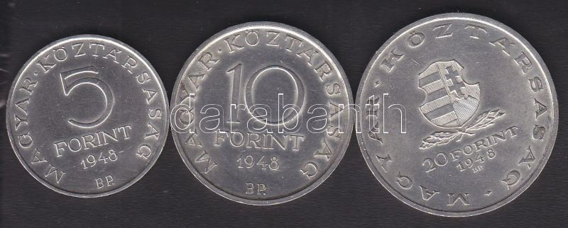 1948. 5Ft "Petőfi" + 10Ft "Széchenyi" + 20Ft "Táncsics" Ag sor T:2 kis... https://www.darabanth.com/de/142-Fernauktion/142.0/Numismatik/Ungarische-Munzen~1500009/1948-5Ft-Petofi-plus-10Ft-Szechenyi-plus-20Ft-Tancsics-Ag-sor-T2-kis-ph~II420661