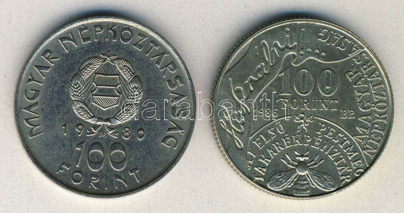 1980. 100Ft "Szovjet-magyar közös űrrepülés" + 1986. 100Ft "Fáy András... https://www.darabanth.com/de/142-Fernauktion/142.0/Numismatik/Ungarische-Munzen~1500009/1980-100Ft-Szovjet-magyar-kozos-urrepules-plus-1986-100Ft-Fay-Andras-TBU~II422731