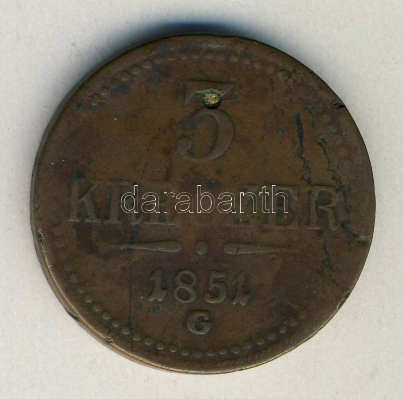 Ausztria/magyar verdejel 1851G 3Kr T:3 ph. https://www.darabanth.com/de/142-Fernauktion/142.0/Numismatik/Ungarische-Munzen~1500009/Ausztriamagyar-verdejel-1851G-3Kr-T3-ph~II422269