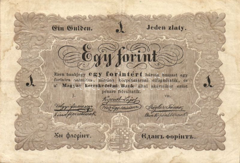 1848. 1Ft "Kossuth Bankó" T:III https://www.darabanth.com/de/142-Fernauktion/142.0/Numismatik/Ungarische-banknoten~1500008/1848-1Ft-Kossuth-Banko-TIII~II422119