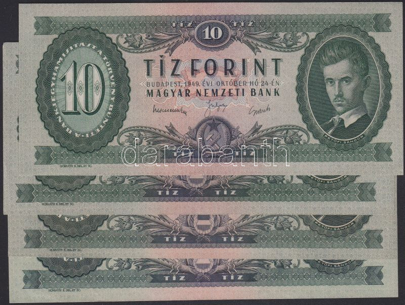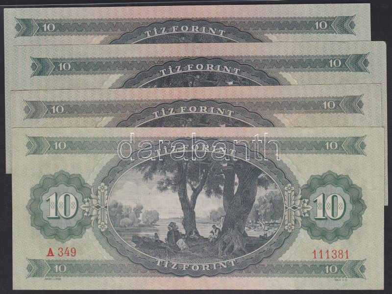1949-1962. 10Ft (4x) különféle évszámokkal! T:II+,II https://www.darabanth.com/de/142-Fernauktion/142.0/Numismatik/Ungarische-banknoten~1500008/1949-1962-10Ft-4x-kulonfele-evszamokkal-TIIplus-II~II420458