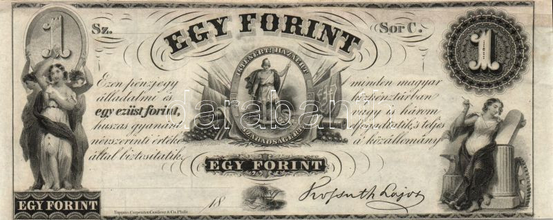 Emigrációs "Kossuth-bankó" 18.. 1Ft "Sor C." T:II javítva https://www.darabanth.com/de/142-Fernauktion/142.0/Numismatik/Ungarische-banknoten~1500008/Emigracios-Kossuth-banko-18-1Ft-Sor-C-TII-javitva~II400062