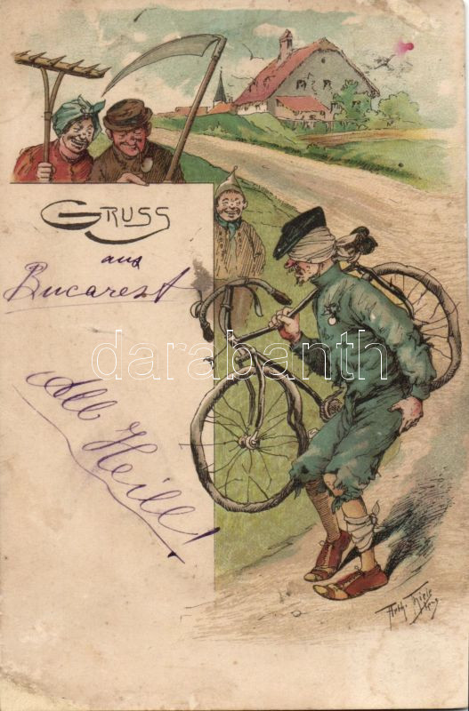 Wounded cyclist litho s: Arthur Thiele https://www.darabanth.com/de/143-Fernauktion/143.0/Ansichtskarten/Humor~900065/Wounded-cyclist-litho-s-Arthur-Thiele~II423435
